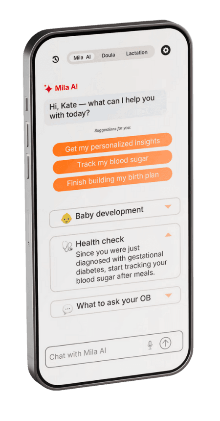 Use Mila AI for instant guidance and connect with a certified pregnancy & postpartum guide when things get nuanced.